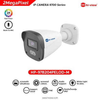 กล้อง IP ทรงกระบอก ความคมชัด 2MP กันน้ำ กันฝน ภาพสี 24 ชม. พร้อมบันทึกเสียง สามารถตีเส้นตรวจจับคนบุกรุก หรือตรวจจับการเคลื่อนไหวได้