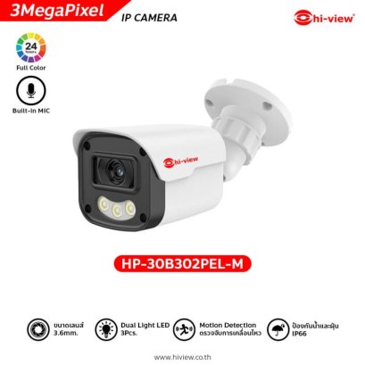 กล้องไอพีทรงโดม 3MP ภสพสี 24 ชม. พร้อมบันทึกเสียง ขนาดเลนส์ 3.6 มม. มี Motion ตรวจจับการเคลื่อนไหว มาตราฐานกันน้ำ IP66