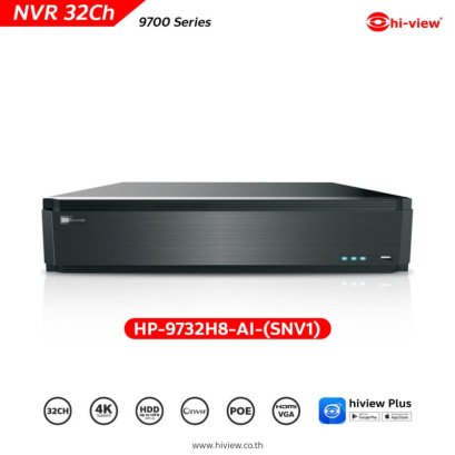 NVR จำนวน 32 ช่อง รองรับความคมชัดสูงสุด 4K ใส่ฮาร์ดดิสได้สูงสุด 8 ลูก ลูกละไม่เกิน 8 เทราไบต์