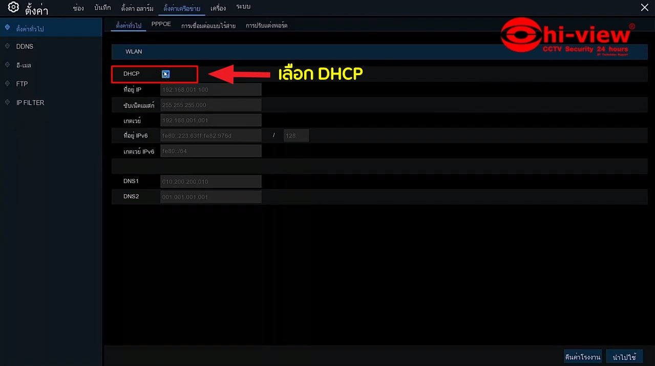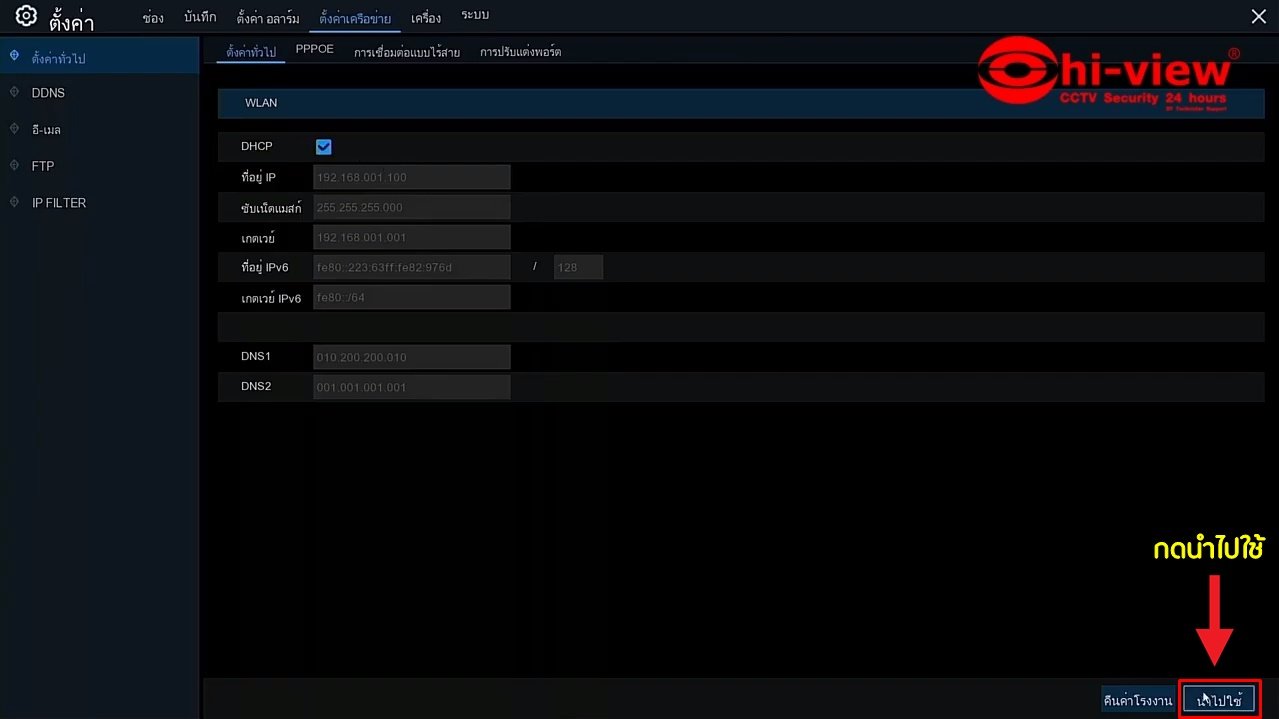 5. หากยังไม่ได้ทำการติ๊กที่ DHCP ให้ทำการติ๊ก DHCP แล้วกดนำไปใช้