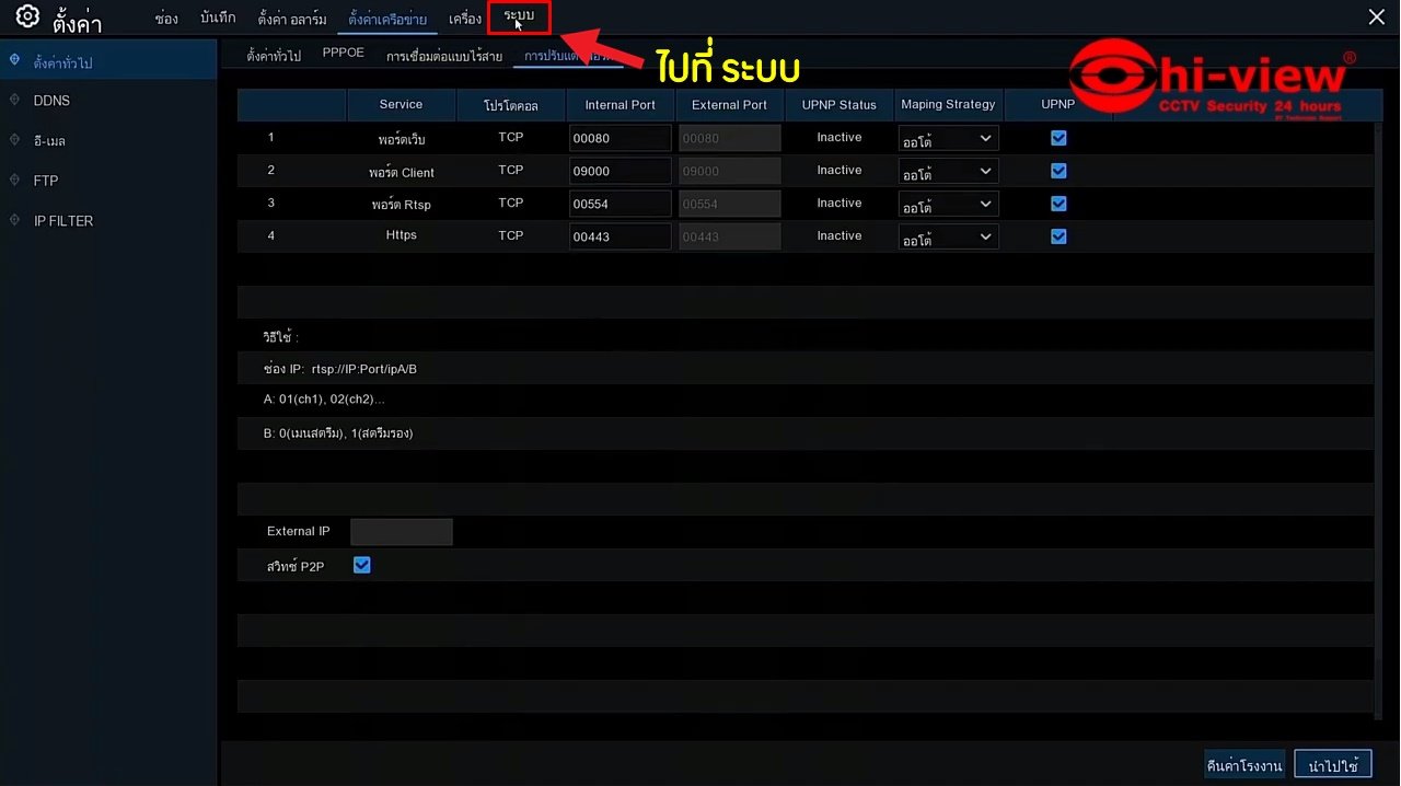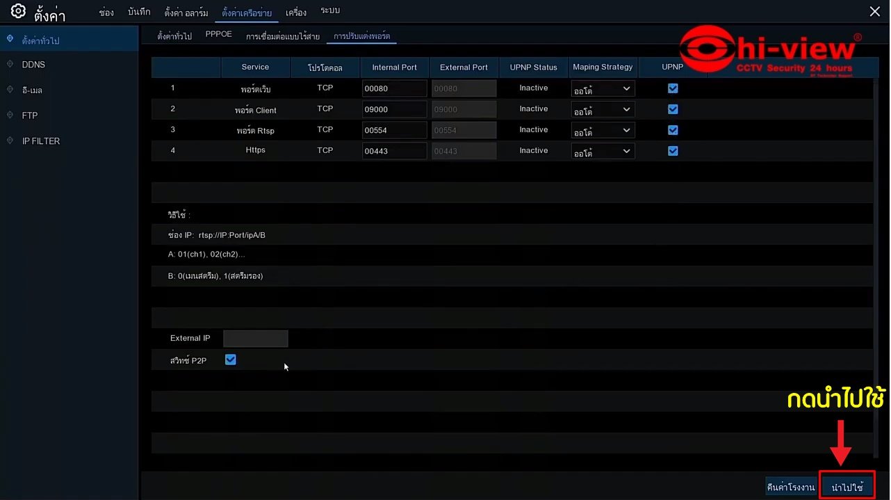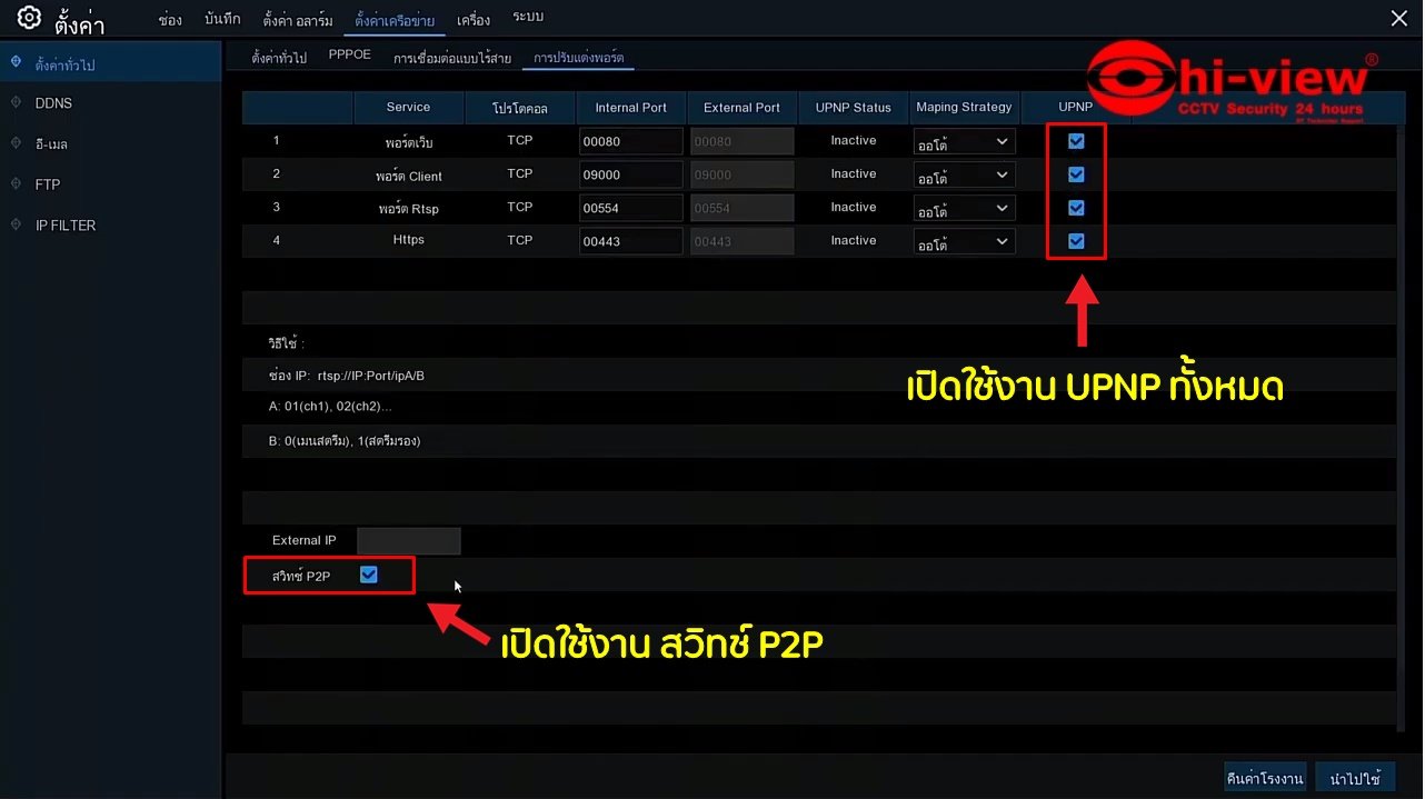 7. ทำการเปิดใช้งาน UPNP ทั้งหมด รวมถึงสวิทซ์ P2P