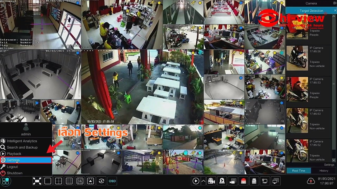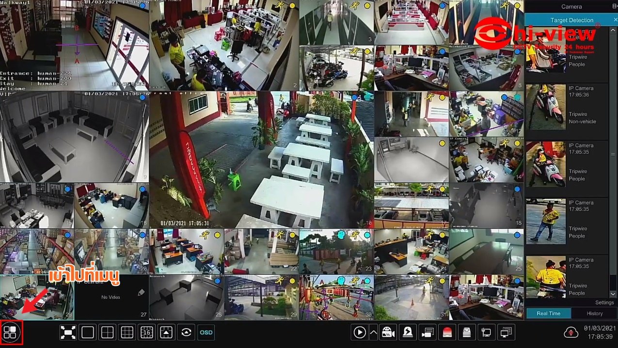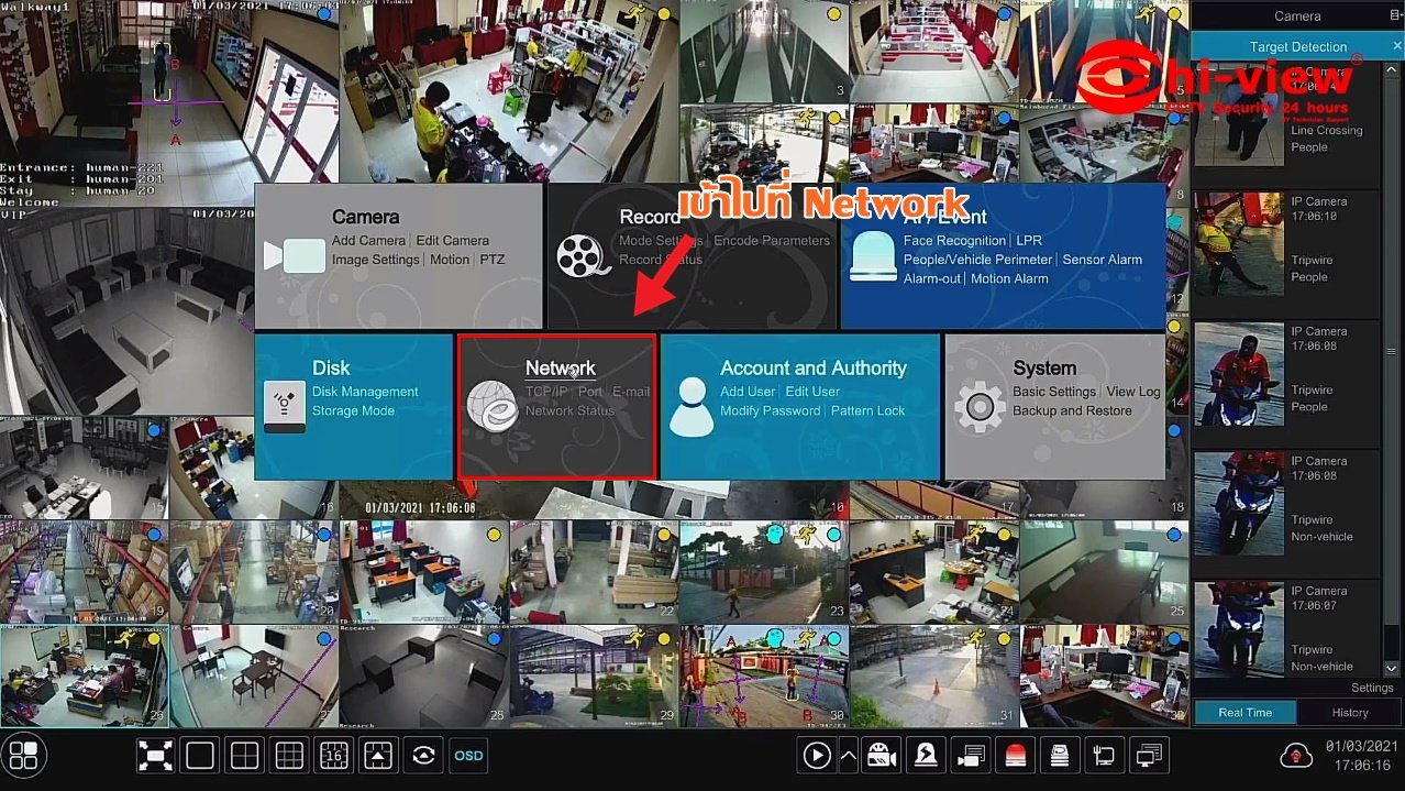 1.เข้าไปที่หน้าเมนู ของเครื่องบันทึกภาพ ใช้เมาส์เลื่อนไปที่เมนู (มุมซ้ายด้านล่าง)